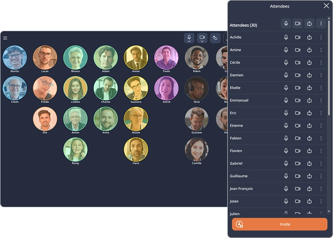 Seul l’organisateur possède tous les droits dans une réunion pour garder un œil sur les participants, avant et pendant les échanges.